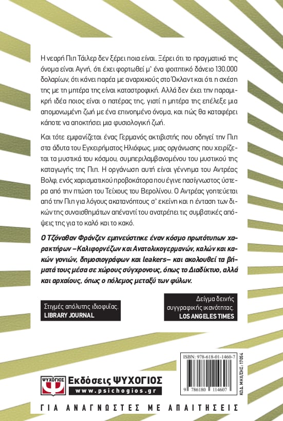 Ο Τζόναθαν Φράνζεν εμπνεύστηκε έναν κόσμο πρωτότυπων χαρακτήρων -Καλιφορνέζων και Ανατολικογερμανών, καλών και κακών γονιών, δημοσιογράφων και leakers- και ακολουθεί τα βήματά τους μέσα σε χώρους σύγχρονους, όπως το Διαδίκτυο, αλλά και αρχαίους, όπως ο πόλεμος μεταξύ των φύλων.