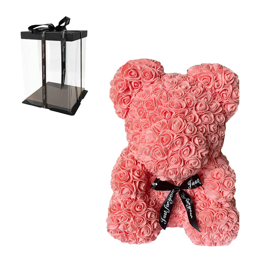 Αρκουδάκι από σομόν τριαντάφυλλα με φιογκάκι, 40cm