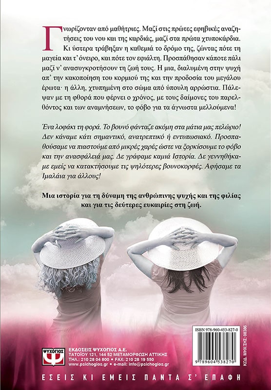 Γνωρίζονταν από μαθήτριες. Μαζί στις πρώτες εφηβικές αναζητήσεις του νου και της καρδιάς, μαζί στα πρώτα χτυποκάρδια. Κι ύστερα τράβηξαν η καθεμιά το δρόμο της, ζώντας πότε τη μαγεία και τ’ όνειρο, και πότε τον εφιάλτη. Προσπάθησαν κάποτε πάλι μαζί ν’ ανασυγκροτήσουν τη ζωή τους. Η μια, διαλυμένη στην ψυχή απ’ την κακοποίηση του κορμιού της και την προδοσία του μεγάλου έρωτα• η άλλη, χτυπημένη στο σώμα από ύπουλη αρρώστια. Πάλεψαν με τη φθορά που φέρνει ο χρόνος, με τους δαίμονες του παρελθόντος και των αναμνήσεων, το φόβο για τα άγνωστα μελλούμενα! Ένα λοφάκι τη φορά. Το βουνό φάνταζε ακόμη στα μάτια μας πελώριο! Δεν κάναμε κάτι σημαντικό, ανατρεπτικό ή εντυπωσιακό. Προσπαθούσαμε να πιαστούμε από μικρές χαρές ώστε να ξορκίσουμε το φόβο και την ανασφάλειά μας. Δε γράφαμε καμιά Ιστορία. Δε γεννηθήκαμε εμείς να κατακτήσουμε τις ψηλότερες βουνοκορφές. Αφήσαμε τα Ιμαλάια για άλλους! Μια ιστορία για τη δύναμη της ανθρώπινης ψυχής και της φιλίας και για τις δεύτερες ευκαιρίες στη ζωή.