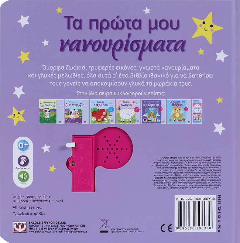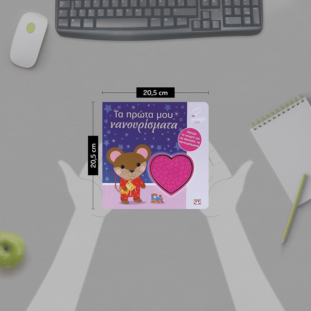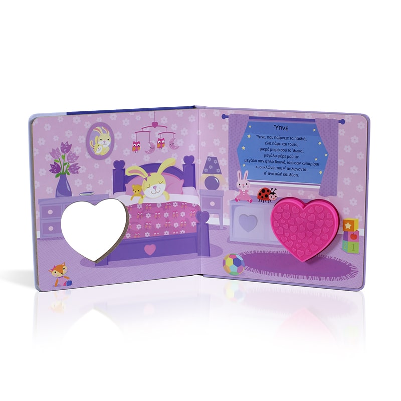 Όμορφα ζωάκια, τρυφερές εικόνες, γνωστά νανουρίσματα και γλυκές μελωδίες, όλα αυτά σ’ ένα βιβλίο ιδανικό για να βοηθήσει τους γονείς να αποκοιμήσουν γλυκά τα μωράκια τους.