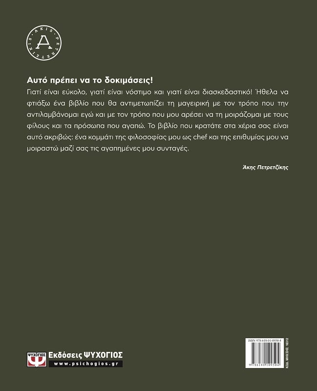 Αυτό πρέπει να το δοκιμάσεις! Γιατί είναι εύκολο, γιατί είναι νόστιμο και γιατί είναι διασκεδαστικό! Ήθελα να φτιάξω ένα βιβλίο που θα αντιμετωπίζει τη μαγειρική με τον τρόπο που την αντιλαμβάνομαι εγώ και με τον τρόπο που μου αρέσει να τη μοιράζομαι με τους φίλους και τα πρόσωπα που αγαπώ. Το βιβλίο που κρατάτε στα χέρια σας είναι αυτό ακριβώς: ένα κομμάτι της φιλοσοφίας μου ως chef και της επιθυμίας μου να μοιραστώ μαζί σας τις αγαπημένες μου συνταγές.