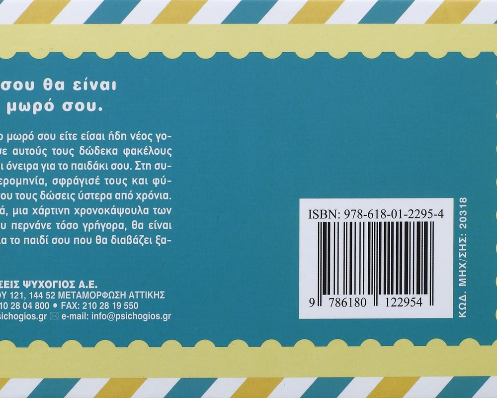 Είτε περιμένεις το μωρό σου είτε είσαι ήδη νέος γονιός, συμπλήρωσε αυτούς τους δώδεκα φακέλους με αναμνήσεις και όνειρα για το παιδάκι σου. Στη συνέχεια, βάλε ημερομηνία, σφράγισέ τους και φύλαξέ τους για να του τους δώσεις ύστερα από χρόνια. Τα γράμματα αυτά, μια χάρτινη χρονοκάψουλα των πρώτων ετών που περνάνε τόσο γρήγορα, θα είναι ένας θησαυρός για το παιδί σου που θα διαβάζει ξανά και ξανά.
