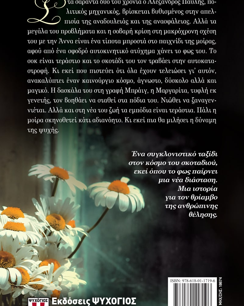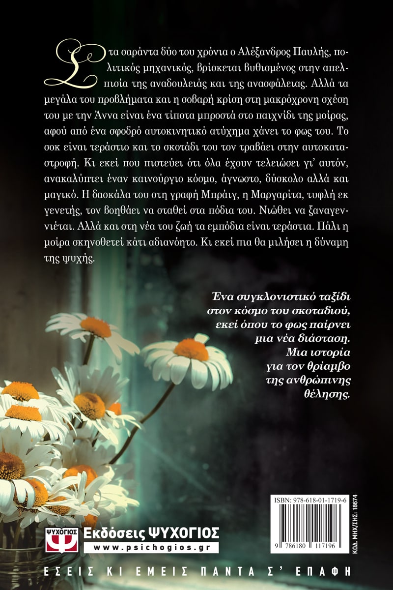 Στα σαράντα δύο του χρόνια ο Αλέξανδρος Παυλής, πολιτικός μηχανικός, βρίσκεται βυθισμένος στην απελπισία της αναδουλειάς και της ανασφάλειας. Αλλά τα μεγάλα του προβλήματα και η σοβαρή κρίση στη μακρόχρονη σχέση του με την Άννα είναι ένα τίποτα μπροστά στο παιχνίδι της μοίρας, αφού από ένα σφοδρό αυτοκινητικό ατύχημα χάνει το φως του. Το σοκ είναι τεράστιο και το σκοτάδι του τον τραβάει στην αυτοκαταστροφή. Κι εκεί που πιστεύει ότι όλα έχουν τελειώσει γι’ αυτόν, ανακαλύπτει έναν καινούργιο κόσμο, άγνωστο, δύσκολο αλλά και μαγικό. Η δασκάλα του στη γραφή Μπράιγ, η Μαργαρίτα, τυφλή εκ γενετής, τον βοηθάει να σταθεί στα πόδια του. Νιώθει να ξαναγεννιέται. Αλλά και στη νέα του ζωή τα εμπόδια είναι τεράστια. Πάλι η μοίρα σκηνοθετεί κάτι αδιανόητο. Κι εκεί πια θα μιλήσει η δύναμη της ψυχής.