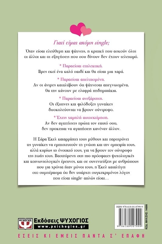Η Σάρα Έκελ καταρρίπτει τους μύθους και παροτρύνει τις γυναίκες να εμπιστευτούν τη γνώση και την εμπειρία τους, αλλά κυρίως το ένστικτό τους, για να βρουν τον σύντροφο της ζωής τους. Βασιζόμενη στις πιο πρόσφατες ψυχολογικές και κοινωνιολογικές έρευνες, και σε συνεντεύξεις με ανθρώπους που για χρόνια ήταν μόνοι τους, η Έκελ καταλήγει στο συμπέρασμα ότι δεν υπάρχει κάποιος συγκεκριμένος λόγος που είσαι single∙ απλώς είσαι…