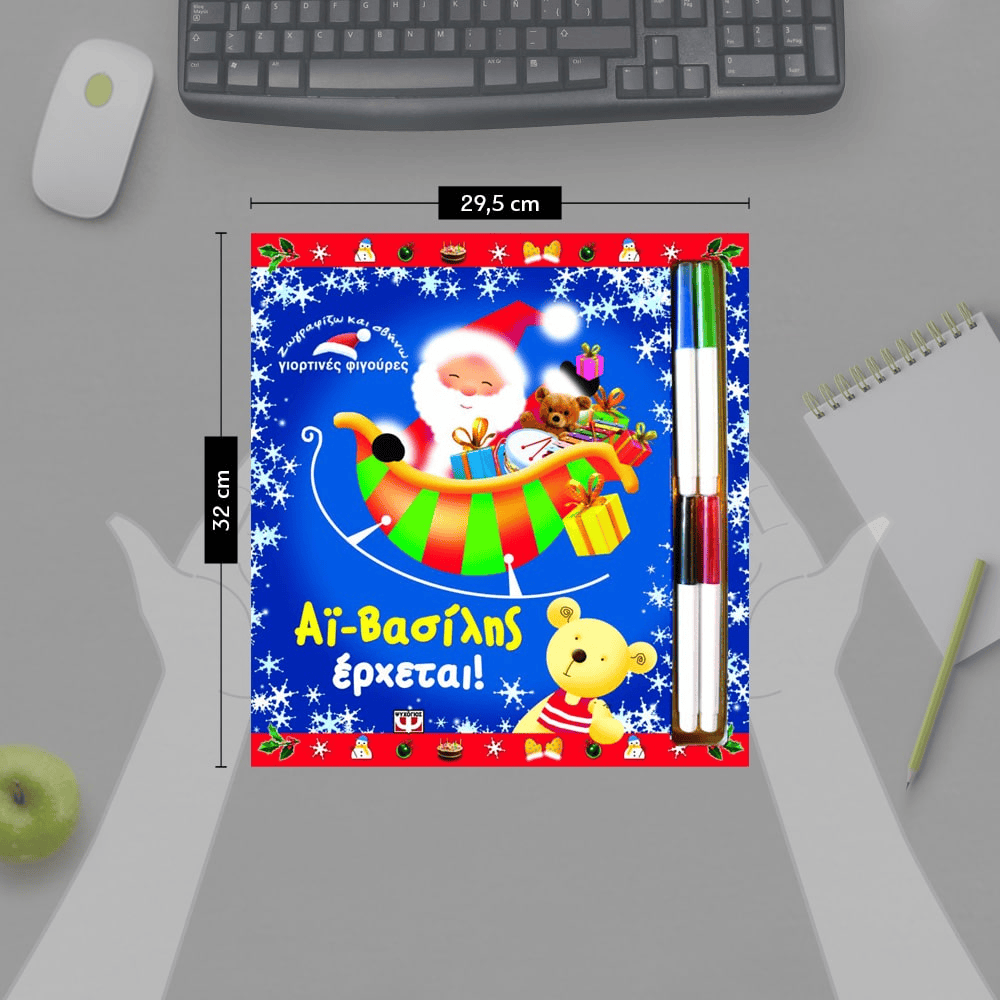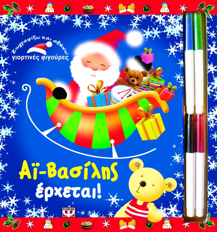 Ετοιμάσου να υποδεχτείς τον Αϊ-Βασίλη μαθαίνοντας να ζωγραφίζεις γιορτινές φιγούρες! Χρησιμοποίησε τους μαρκαδόρους που θα βρεις στο βιβλίο για να φτιάξεις τις δικές σου μαγικές εικόνες. Μετά σβήστες και φτιάξε άλλες για ατελείωτο παιχνίδι!