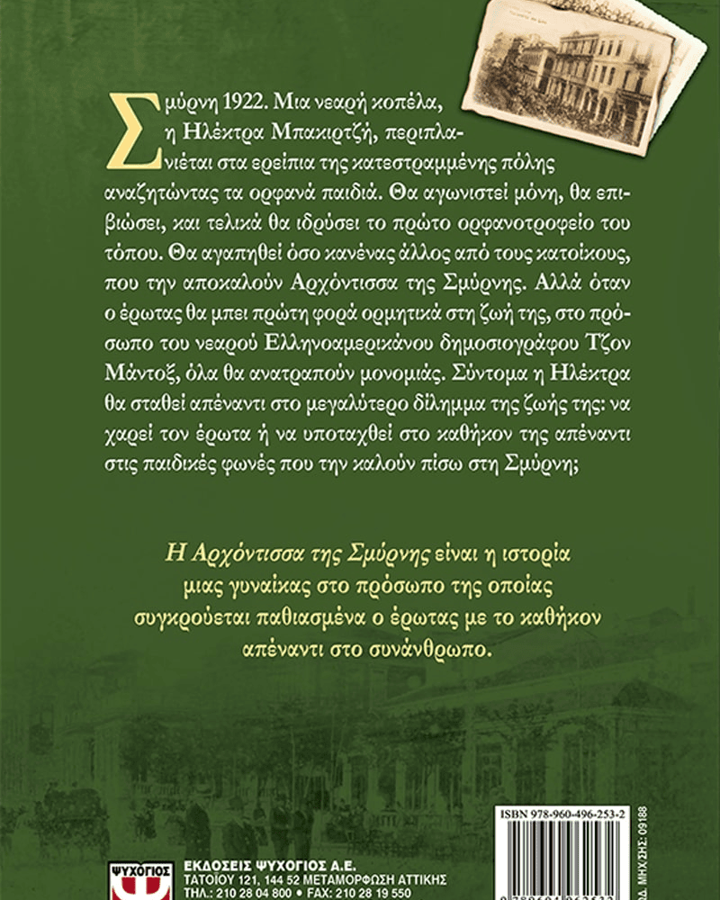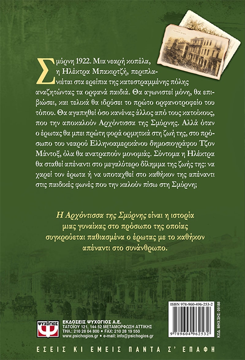 Σμύρνη 1922. Μια νεαρή κοπέλα, η Ηλέκτρα Μπακιρτζή, περιπλανιέται στα ερείπια της κατεστραμμένης πόλης αναζητώντας τα ορφανά παιδιά. Θα αγωνιστεί μόνη, θα επιβιώσει, και τελικά θα ιδρύσει το πρώτο ορφανοτροφείο του τόπου. Θα αγαπηθεί όσο κανένας άλλος από τους κατοίκους, που την αποκαλούν Αρχόντισσα της Σμύρνης. Αλλά όταν ο έρωτας θα μπει πρώτη φορά ορμητικά στη ζωή της, στο πρόσωπο του νεαρού Ελληνοαμερικάνου δημοσιογράφου Τζον Μάντοξ, όλα θα ανατραπούν μονομιάς. Σύντομα η Ηλέκτρα θα σταθεί απέναντι στο μεγαλύτερο δίλημμα της ζωής της: να χαρεί τον έρωτα ή να υποταχθεί στο καθήκον της απέναντι στις παιδικές φωνές που την καλούν πίσω στη Σμύρνη;