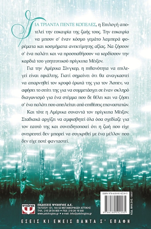 Για την Αμέρικα Σίνγκερ, η πιθανότητα να επιλεγεί είναι εφιάλτης. Γιατί σημαίνει ότι θα αναγκαστεί να απαρνηθεί τον κρυφό έρωτά της για τον Άσπεν, να αφήσει το σπίτι της για να συμμετάσχει σε έναν σκληρό διαγωνισμό για ένα στέμμα που δε θέλει και να ζήσει σ’ ένα παλάτι που απειλείται από επιθέσεις επαναστατών.