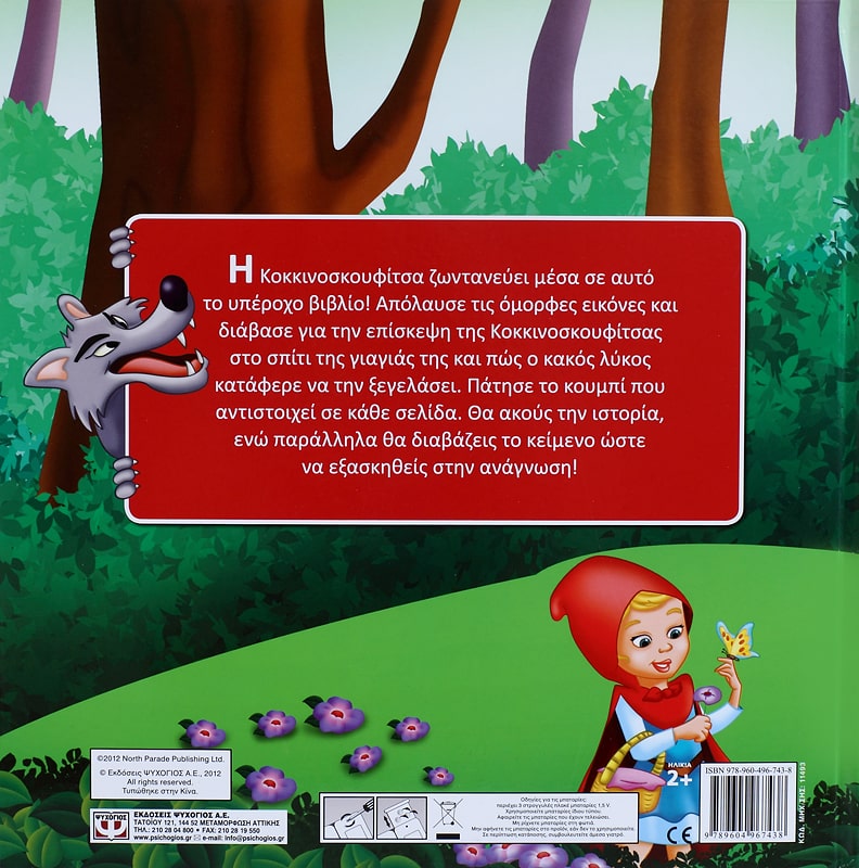 Η Κοκκινοσκουφίτσα ζωντανεύει μέσα σε αυτό το υπέροχο βιβλίο! Απόλαυσε τις όμορφες εικόνες και διάβασε για την επίσκεψη της Κοκκινοσκουφίτσας στο σπίτι της γιαγιάς της και πώς ο κακός λύκος κατάφερε να την ξεγελάσει. Πάτησε το κουμπί που αντιστοιχεί σε κάθε σελίδα. Θα ακούς την ιστορία, ενώ παράλληλα θα διαβάζεις το κείμενο ώστε να εξασκηθείς στην ανάγνωση!