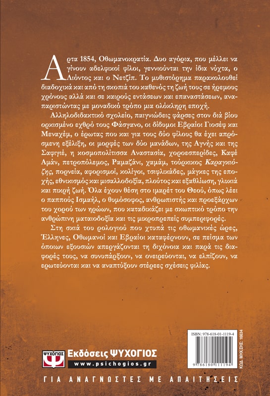 Άρτα 1854, Οθωμανοκρατία. Δυο αγόρια, που μέλλει να γίνουν αδελφικοί φίλοι, γεννιούνται την ίδια νύχτα, ο Λιόντος και ο Nετζίπ. Το μυθιστόρημα παρακολουθεί διαδοχικά και από τη σκοπιά του καθενός τη ζωή τους σε ήρεμους χρόνους, αλλά και σε καιρούς εντάσεων και επαναστάσεων, αναπαριστώντας με μοναδικό τρόπο μια ολόκληρη εποχή.