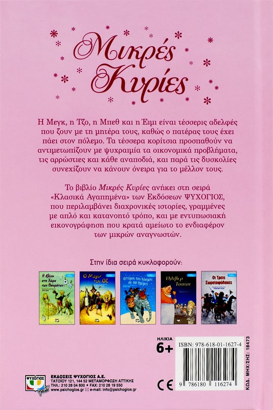 Το βιβλίο Μικρές Κυρίες ανήκει στη σειρά«Κλασικά Αγαπημένα» των Εκδόσεων ΨΥΧΟΓΙΟΣ,που περιλαµβάνει διαχρονικές ιστορίες, γραµµένεςµε απλό και κατανοητό τρόπο, και µε εντυπωσιακή εικονογράφηση που κρατά αµείωτο το ενδιαφέροντων µικρών αναγνωστών.