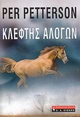 Ο πολυβραβευμένος Νορβηγός Περ Πέτερσον, στο μαγικό, συναρπαστικό μυθιστόρημά του Κλέφτης Αλόγων, αναφέρεται στην απόλαυση της μοναξιάς και τη μοναχικότητα που καμιά φορά επιβάλλουν οι προσωπικές τραγωδίες. Ο ήρωας του μυθιστορήματος, ο Τροντ, που χήρεψε πρόσφατα, θέλει αποκλειστικά και μόνο ένα πράγμα: να είναι μόνος, γι’ αυτό άλλωστε απομονώνεται σε μια φάρμα σε μια ακριτική περιοχή της Νορβηγίας και ακολουθεί κατά γράμμα την καθημερινή ρουτίνα συντήρησης του χώρου και επαφής με τη φύση και τα ζώα. Η απόλυτη ηρεμία όμως καταρρέει όταν εμφανίζεται στο κατώφλι του ο μοναδικός γείτονας, που είναι και παιδικός του φίλος. Το χτύπημα της πόρτας θα επαναφέρει μνήμες θαμμένες πάνω από πενήντα χρόνια, από το καλοκαίρι του 1948, όταν προσωπικές και παγκόσμιες τραγωδίες άλλαξαν για πάντα κάθε φιλική και οικογενειακή σχέση του Τροντ. Μια αριστουργηματική γραφή από έναν από τους αρτιότερους σύγχρονους Ευρωπαίους συγγραφείς. Το καλοκαiρι του 1948 ο Τροντ και ο πατέρας του μένουν σε μια καλύβα δίπλα σ’ ένα ποτάμι κοντά στα σύνορα με τη Σουηδία. Ο Τροντ είναι δεκαπέντε χρονών. Οι εμπειρίες που θα βιώσει εκείνες τις βδομάδες θα αλλάξουν για πάντα τη ζωή του. Το μυθιστόρημα "Κλέφτης αλόγων" είναι ένα βιβλίο-κόσμημα, γεμάτο εξυπνάδα, γοητεία και ρεαλισμό. Καταπιάνεται με ένα τραγικό και εξαιρετικά σοβαρό θέμα. Πρόκειται για ένα έργο ανείπωτης αξίας.