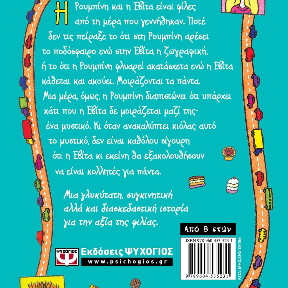 Η Ρουμπίνη και η Εβίτα είναι φίλες από τη μέρα που γεννήθηκαν. Ποτέ δεν τις πείραξε το ότι στη Ρουμπίνη αρέσει το ποδόσφαιρο ενώ στην Εβίτα η ζωγραφική, ή το ότι η Ρουμπίνη φλυαρεί ακατάσχετα ενώ η Εβίτα κάθεται και ακούει. Μοιράζονται τα πάντα. Μια μέρα, όμως, η Ρουμπίνη διαπιστώνει ότι υπάρχει κάτι που η Εβίτα δε μοιράζεται μαζί της∙ ένα μυστικό. Κι όταν ανακαλύπτει κιόλας αυτό το μυστικό, δεν είναι καθόλου σίγουρη ότι η Εβίτα κι εκείνη θα εξακολουθήσουν να είναι κολλητές για πάντα.