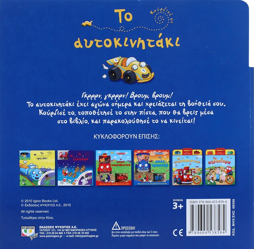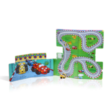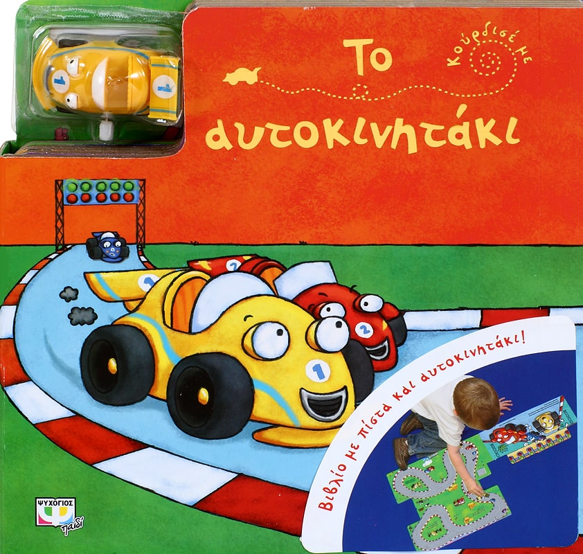 Γκρρρν, γκρρρν! Βρουμ, βρουμ! Το αυτοκινητάκι έχει αγώνα σήμερα και χρειάζεται τη βοήθειά σου. Κούρδισέ το, τοποθέτησέ το στην πίστα, που θα βρεις μέσα στο βιβλίο, και παρακολούθησέ το να κινείται!