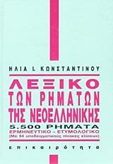 Το "Λεξικό των ρημάτων της νεοελληνικής" έρχεται να καλύψει ένα κενό της λεξικογραφικής βιβλιογραφίας μας. Περιέχει:- 5.500 ρήματα με: 1) την ερμηνεία τους, 2) το θέμα τους, 3) τα παράγωγά τους, 4) την υποδειγματική κλίση τους, σ΄όλους τους χρόνους και σ΄όλα τα πρόσωπα.-64 υποδειγματικούς για την κλίση των ρημάτων πίνακες- κανόνες ορθογραφίας των καταλήξεων των ρημάτωνΤο "Λεξικό των ρημάτων της νεοελληνικής" είναι ένα εύχρηστο λεξικό-εργαλείο στα χέρια του κάθε δασκάλου, του κάθε μαθητή, του κάθε ενδιαφερόμενου στο πρόβλημα του γραπτού μας λόγου.