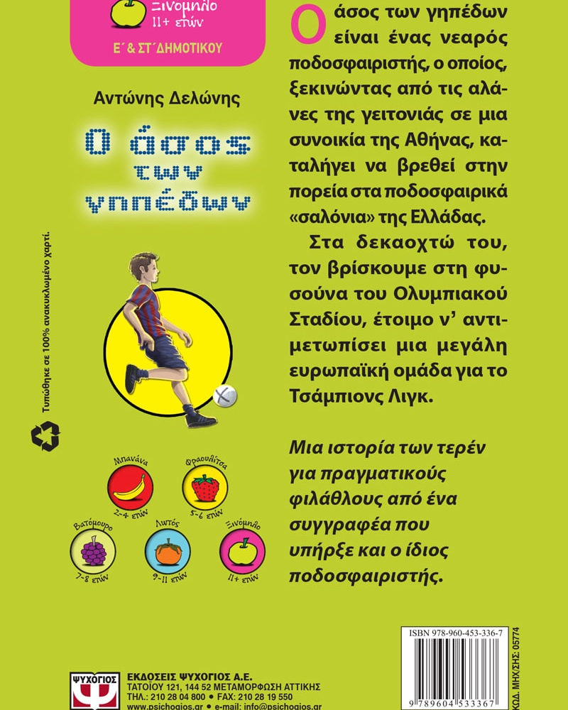Ο άσος των γηπέδων είναι ένας νεαρός ποδοσφαιριστής, ο οποίος, ξεκινώντας από τις αλάνες της γειτονιάς σε μια συνοικία της Αθήνας, καταλήγει να βρεθεί στα ποδοσφαιρικά “σαλόνια” της Ελλάδας. Στα δεκαοχτώ του, τον βρίσκουμε στη φυσούνα του Ολυμπιακού Σταδίου, έτοιμο ν” αντιμετωπίσει μια μεγάλη ευρωπαϊκή ομάδα για το Τσάμπιονς Λιγκ. Μια ιστορία των τερέν για πραγματικούς φιλάθλους από ένα συγγραφέα που υπήρξε και ο ίδιος ποδοσφαιριστής.