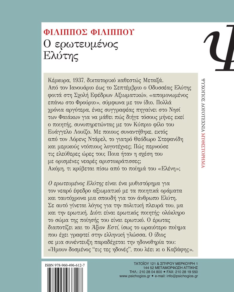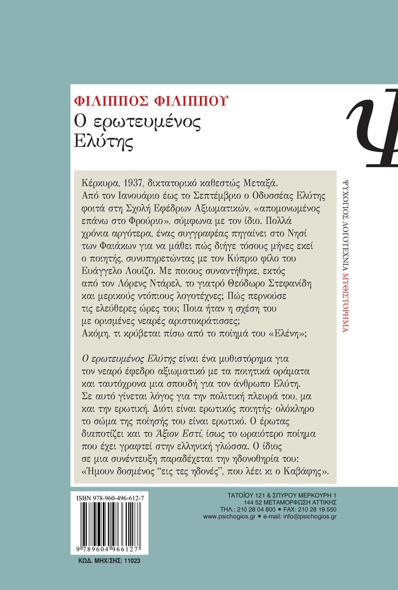 Κέρκυρα, 1937, δικτατορικό καθεστώς Μεταξά. Από τον Ιανουάριο έως το Σεπτέμβριο ο Οδυσσέας Ελύτης φοιτά στη Σχολή Εφέδρων Αξιωματικών, «απομονωμένος επάνω στο Φρούριο», σύμφωνα με τον ίδιο. Πολλά χρόνια αργότερα, ένας συγγραφέας πηγαίνει στο Νησί των Φαιάκων για να μάθει πώς διήγε τόσους μήνες εκεί ο ποιητής, συνυπηρετώντας με τον Κύπριο φίλο του Ευάγγελο Λουίζο. Mε ποιους συναντήθηκε, εκτός από τον Λόρενς Ντάρελ, το γιατρό Θεόδωρο Στεφανίδη και μερικούς ντόπιους λογοτέχνες; Πώς περνούσε τις ελεύθερες ώρες του; Ποια ήταν η σχέση του με ορισμένες νεαρές αριστοκράτισσες; Ακόμη, τι κρύβεται πίσω από το ποίημά του «Ελένη»;