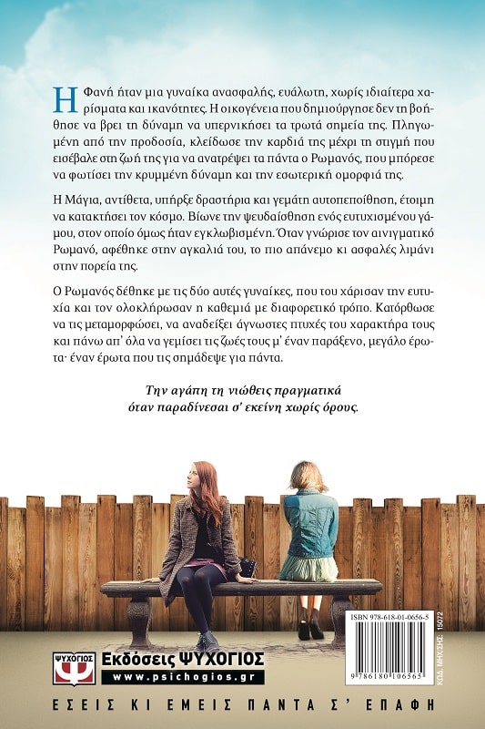 Ο Ρωμανός δέθηκε με τις δύο αυτές γυναίκες, που του χάρισαν την ευτυχία και τον ολοκλήρωσαν η καθεμιά με διαφορετικό τρόπο. Κατόρθωσε να τις μεταμορφώσει, να αναδείξει άγνωστες πτυχές του χαρακτήρα τους και πάνω απ’ όλα να γεμίσει τις ζωές τους μ’ έναν παράξενο, μεγάλο έρωτα∙ έναν έρωτα που τις σημάδεψε για πάντα.