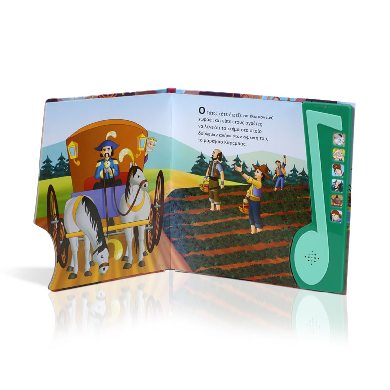 Ο Παπουτσωμένος Γάτος ζωντανεύει μέσα σε αυτό το υπέροχο βιβλίο! Απόλαυσε τις όμορφες εικόνες και διάβασε την ιστορία του πανέξυπνου Παπουτσωμένου Γάτου, που με τα κόλπα του βοήθησε το αφεντικό του, ένα φτωχό νεαρό, να γνωρίσει το βασιλιά και να παντρευτεί την κόρη του. Πάτησε το κουμπί που αντιστοιχεί σε κάθε σελίδα. Θα ακούς την ιστορία ενώ παράλληλα θα διαβάζεις το κείμενο ώστε να εξασκηθείς στην ανάγνωση!