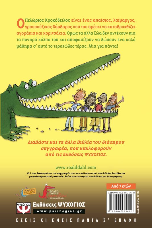 Ο Πελώριος Κροκόδειλος είναι ένας απαίσιος, λαίμαργος, γρουσούζικος βάρβαρος που του αρέσει να καταβροχθίζει αγοράκια και κοριτσάκια. Όμως τα άλλα ζώα δεν αντέχουν πια τα πονηρά κόλπα του και αποφασίζουν να δώσουν ένα καλό μάθημα σ’ αυτό το τερατώδες τέρας. Μια για πάντα!