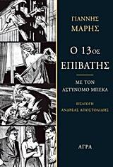 -Πάρε στο τηλέφωνο τη Χωροφυλακή, είπε ο Μπέκας ανυπόμονα. Ως το απόγευμα θέλω να έχεις νέα. Βγήκε από το γραφείο του σκυθρωπός. Δεν αγαπούσε τις υποθέσεις που θύμιζαν μυθιστορήματα κι ένιωθε τον εαυτό του λίγο γελοίο που έδινε σημασία σε τέτοιες φανταστικές λεπτομέρειες. Ντρεπόταν τώρα για την εντολή που έδωσε στον βοηθό του. Τι δουλειά είχε στο τρένο της Θεσσαλονίκης ο άνθρωπος με το άσπρο κοστούμι; Και, επιτέλους, υπήρχε πραγματικά ένας άνθρωπος με άσπρο κοστούμι; Ποτέ στα τριάντα χρόνια της καριέρας του ο αστυνόμος Μπέκας δεν είχε εκνευριστεί τόσο πολύ. Ένιωθε πως τον κορόιδευαν. Πως υπήρχε ένα φάντασμα που έπαιζε μαζί του. Κι αυτό το φάντασμα φορούσε ένα λευκό κοστούμι. ‘Ηταν ο τέταρτος θάνατος, κι αυτός ο θάνατος ετούτη τη φορά δεν ήταν ούτε αυτοκτονία" ούτε "δυστύχημα". Ήταν ένας καθαρός φόνος με πιστόλι, αλλά φόνος απόλυτα νόμιμος". "Ο 13ος επιβάτης" του Γιάννη Μαρή πρωτοδημοσιεύτηκε το 1962 σε 129 συνέχειες στην "Απογευματινή", με εικονογράφηση του Μ. Γάλλια, και κυκλοφόρησε σε βιβλίο το 1971 από τις βραχύβιες εκδόσεις "Περγαμηνή". Έκτοτε, αν και είναι ένα από τα καλύτερα μυθιστορήματα του πολυγραφότατου συγγραφέα, δεν ξανακυκλοφόρησε. Οι Εκδόσεις Άγρα ξεκινούν με τον "13ο επιβάτη" μια σειρά εκδόσεων "χαμένων" κειμένων του "πατέρα" του ελληνικού αστυνομικού μυθιστορήματος. Οι δύο μεγάλες υποθέσεις του αστυνόμου Μπέκα ήταν το "Έγκλημα στο Κολωνάκι" και η περίπλοκη υπόθεση κληρονομιάς στον "13ο επιβάτη". "Ο 13ος επιβάτης" είναι το πιο τυπικό έργο του Μαρή με ήρωα τον Μπέκα. Η υπόθεση της μεγάλης κληρονομιάς "ήταν η σοβαρότερη και η χειρότερη υπόθεση που ανέλαβε στα τριάντα χρόνια της αστυνομικής του ζωής. Μια υπόθεση στην οποία απέτυχε".