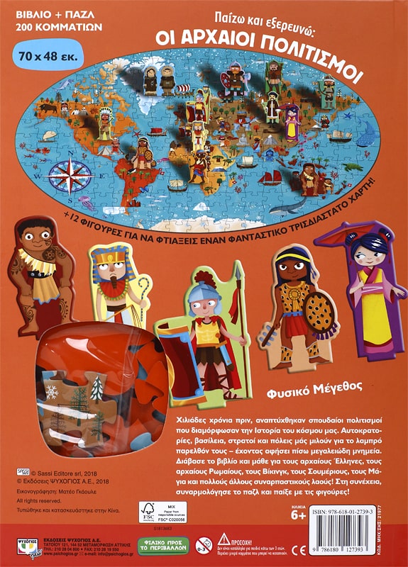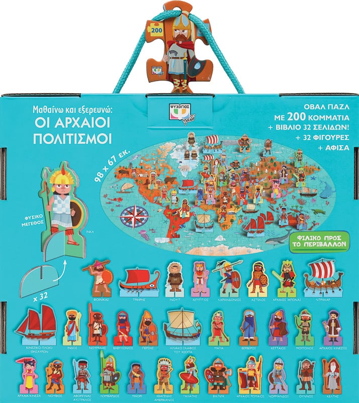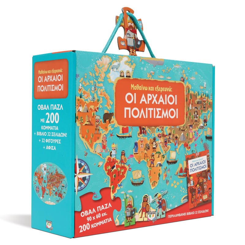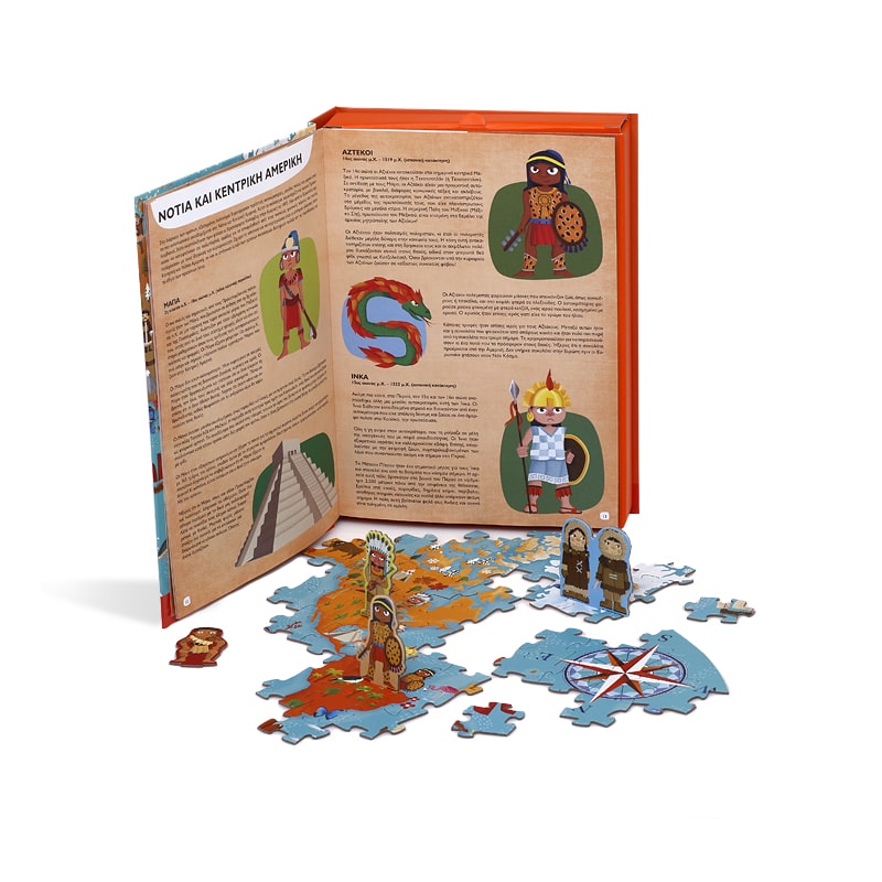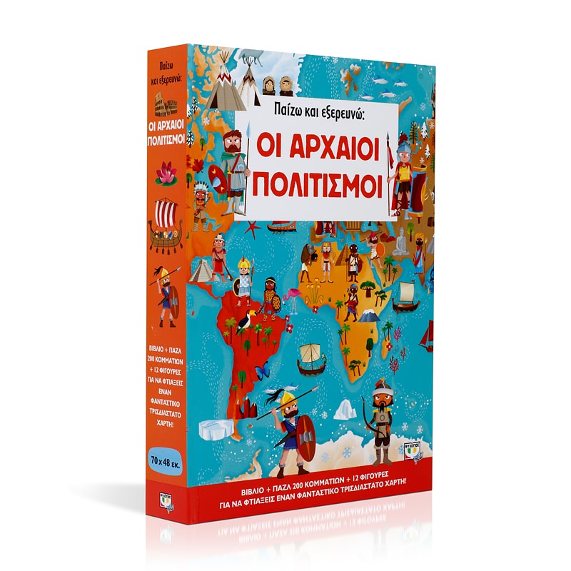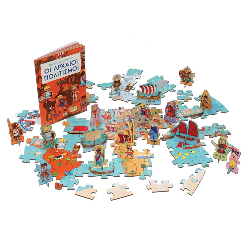Χιλιάδες χρόνια πριν, αναπτύχθηκαν σπουδαίοι πολιτισμοί που διαμόρφωσαν την Ιστορία του κόσμου μας. Αυτοκρατορίες, βασίλεια, στρατοί και πόλεις μάς μιλούν για το λαμπρό παρελθόν τους – έχοντας αφήσει πίσω μεγαλειώδη μνημεία. Διάβασε το βιβλίο και μάθε για τους αρχαίους Έλληνες, τους αρχαίους Ρωμαίους, τους Βίκινγκ, τους Σουμέριους, τους Μάγια και πολλούς άλλους συναρπαστικούς λαούς! Στη συνέχεια, συναρμολόγησε το παζλ και παίξε με τις φιγούρες!