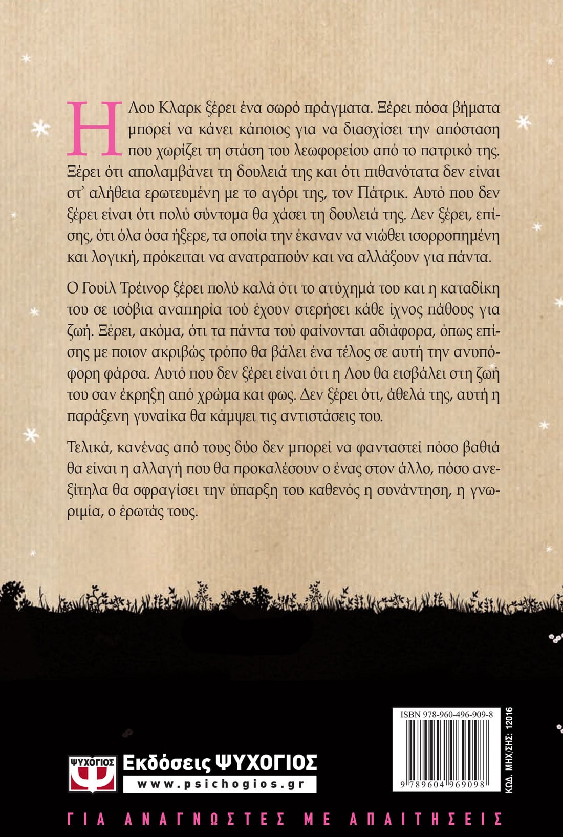 Η Λου Κλαρκ ξέρει ένα σωρό πράγματα. Ξέρει πόσα βήματα μπορεί να κάνει κάποιος για να διασχίσει την απόσταση που χωρίζει τη στάση του λεωφορείου από το πατρικό της. Ξέρει ότι απολαμβάνει τη δουλειά της και ότι πιθανότατα δεν είναι στ’ αλήθεια ερωτευμένη με το αγόρι της, τον Πάτρικ. Αυτό που δεν ξέρει είναι ότι πολύ σύντομα θα χάσει τη δουλειά της. Δεν ξέρει, επίσης, ότι όλα όσα ήξερε, τα οποία την έκαναν να νιώθει ισορροπημένη και λογική, πρόκειται να ανατραπούν και να αλλάξουν για πάντα.
