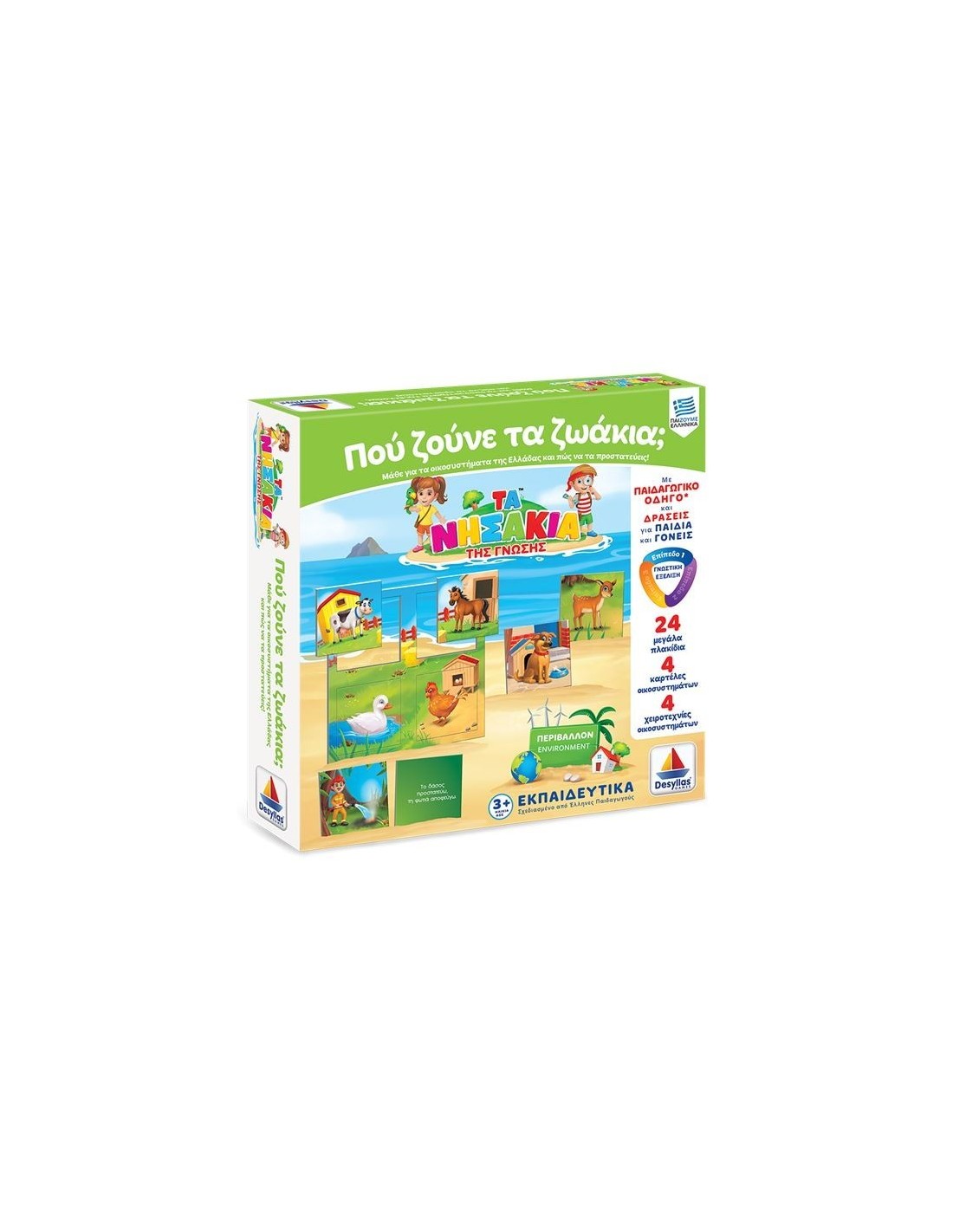 Εσύ ξέρεις πόσα είναι τα οικοσυστήµατα της Ελλάδας; Ποια ζωάκια ζούνε σε αυτά; Μάθε τις χρυσές πληροφορίες για το καθένα και ένωσέ τα στο σωστό οικοσύστηµά τους! Μάθε ποιες είναι οι απειλές του κάθε µέρους και πώς µπορούµε να τις αποτρέψουµε!ΤΑ ΝΗΣΑΚΙΑ ΤΗΣ ΓΝΩΣΗΣ™ είναι µια µοναδική εκπαιδευτική σειρά παιχνιδιών προσχολικής ηλικίας, µε την οποία η κατάκτηση της γνώσης γίνεται πιο διασκεδαστική από ποτέ! Οι θεµατικές ενότητες, οι στόχοι και οι δράσεις έχουν σχεδιαστεί σε συνεργασία µε Έλληνες παιδαγωγούς, σύµφωνα µε το αναλυτικό Πρόγραµµα Σπουδών του Υπουργείου Παιδείας.Αριθμός παικτών: 1+Περιεχόμενα συσκευασίας:- 24 πλακίδια – 4 καρτέλες- 4 εκπαιδευτικές χειροτεχνίες οικοσυστηµάτων- Παιδαγωγικός ΟδηγόςΔιαστάσεις συσκευασίας Μ:24,5xΠ:24,5xΥ:5,5 εκ.