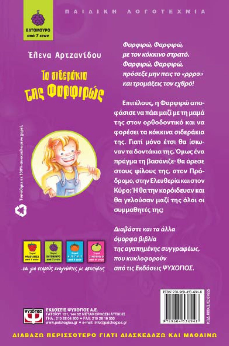 Επιτέλους, η Φαρφιρώ αποφάσισε να πάει μαζί με τη μαμά της στον ορθοδοντικό και να φορέσει τα κόκκινα σιδεράκια της. Γιατί μόνο έτσι θα ίσιωναν τα δοντάκια της. Όμως ένα πράγμα τη βασάνιζε· θα άρεσε στους φίλους της, στον Πρόδρομο, στην Ελευθερία και στον Κύρο; Ή θα την κορόιδευαν και θα γελούσαν μαζί της όλοι οι συμμαθητές της;