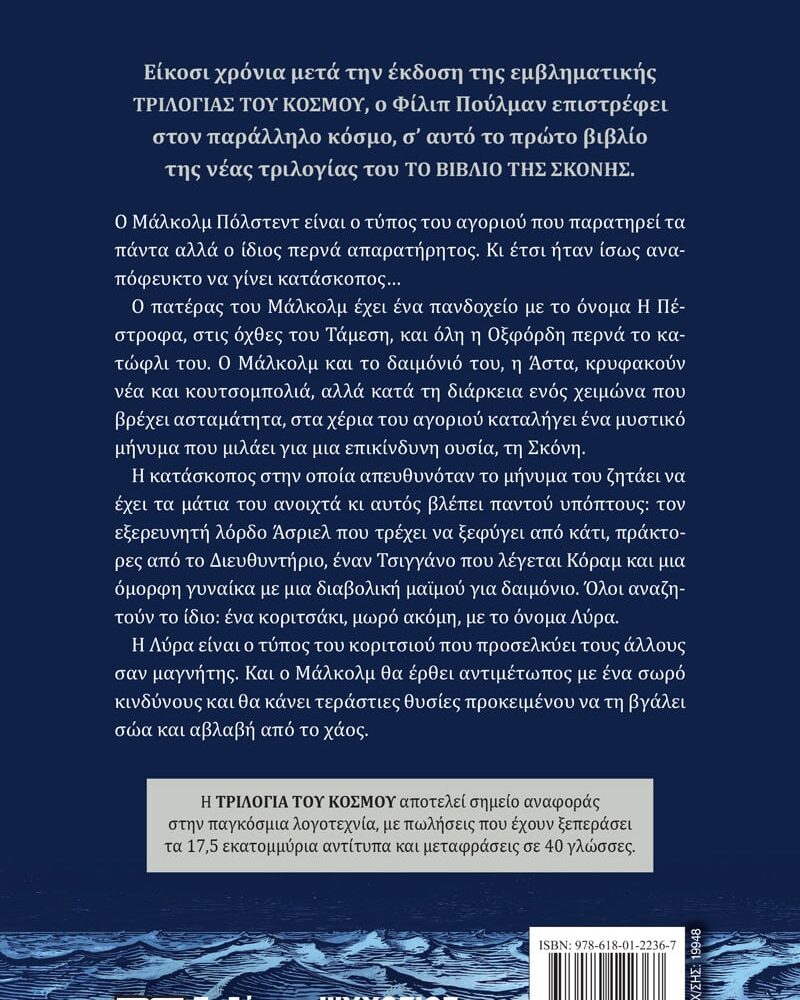 Είκοσι χρόνια μετά την έκδοση της εμβληματικής ΤΡΙΛΟΓΙΑΣ ΤΟΥ ΚΟΣΜΟΥ, ο Φίλιπ Πούλμαν επιστρέφει στον παράλληλο κόσμο, σ’ αυτό το πρώτο βιβλίο της νέας τριλογίας του ΤΟ ΒΙΒΛΙΟ ΤΗΣ ΣΚΟΝΗΣ.