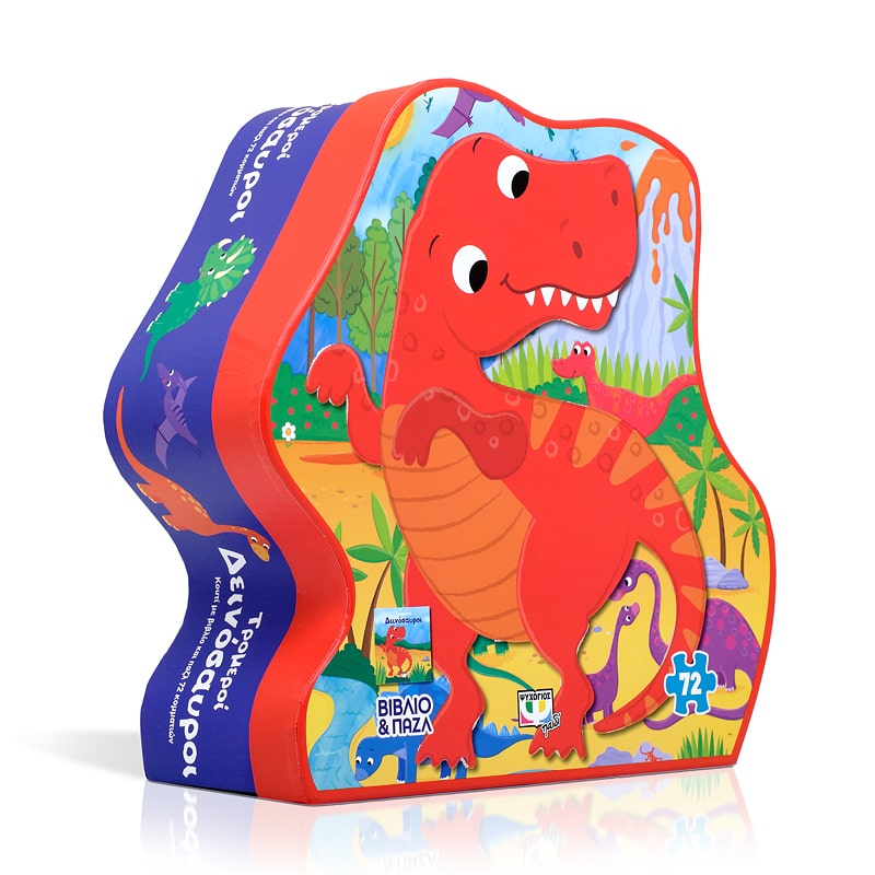 Ένα μοναδικό κουτί στο σχήμα δεινοσαύρου! Διάβασε την ιστορία των τρομερών δεινοσαύρων και συναρμολόγησε το φανταστικό παζλ των 72 κομματιών!