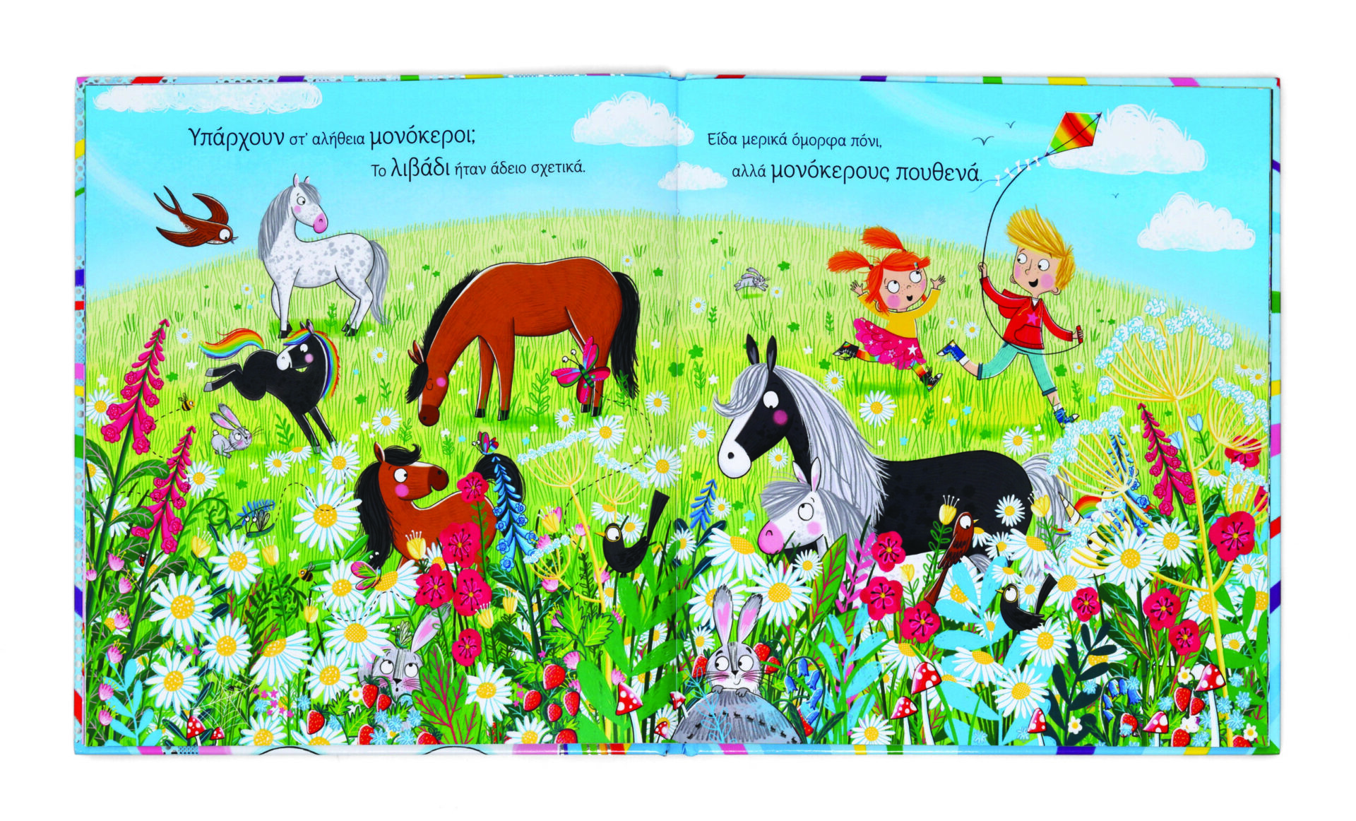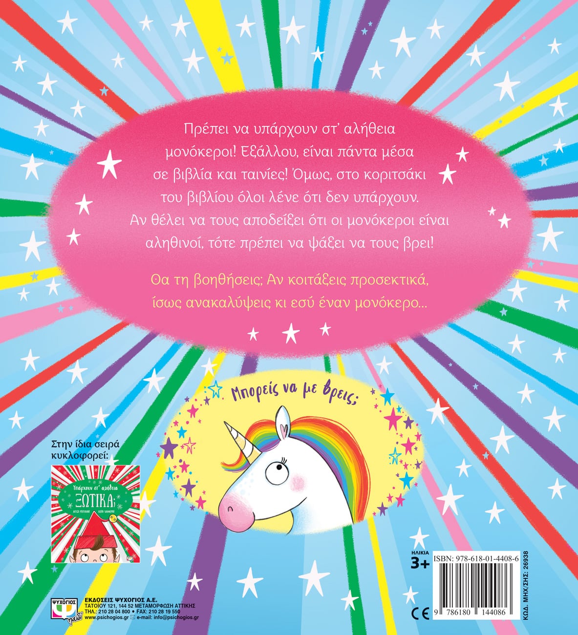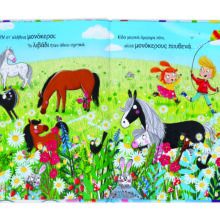 Πρέπει να υπάρχουν στ’ αλήθεια μονόκεροι! Εξάλλου, είναι πάντα μέσα σε βιβλία και ταινίες! Όμως, στο κοριτσάκι του βιβλίου όλοι λένε ότι δεν υπάρχουν. Αν θέλει να τους αποδείξει ότι οι μονόκεροι είναι αληθινοί, τότε πρέπει να ψάξει να τους βρει! Θα τη βοηθήσεις; Αν κοιτάξεις προσεκτικά, ίσως ανακαλύψεις κι εσύ έναν μονόκερο…