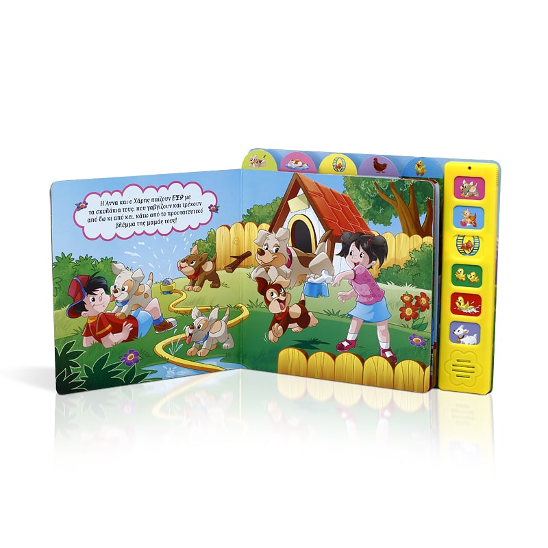 Παιδιά, ελάτε να γνωρίσετε πολλά χαριτωμένα κατοικίδια και οικόσιτα ζωάκια και να δείτε πώς περνούν παρέα με τους ανθρώπους! Πατήστε τα κουμπιά για να ακούσετε τους ήχους που βγάζουν!