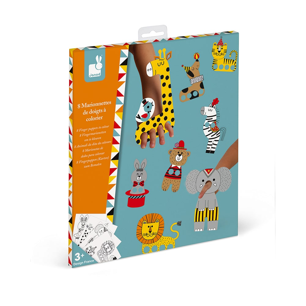 8 δαχτυλοζωάκια από σκληρό χαρτόνι που μπορούν να χρωματιστούν με μαρκαδόρους ή μπογιές. Περιλαμβάνει οδηγίες για τα μοντέλα. Περιεχόμενα: 8 δαχτυλοζωάκια (τίγρη, λιοντάρι, ελέφαντας, αρκούδα, καμηλοπάρδαλη, ζέβρα, κουνέλι, σκύλος). Δημιουργικές δραστηριότητες που προσφέρουν ηρεμία, συγκέντρωση και χαλάρωση. Περιλαμβάνει οδηγίες (σε γαλλικά, αγγλικά, γερμανικά, ολλανδικά, ισπανικά, ιταλικά και ρωσικά). Συσκευασία-φάκελος με λαβή από PET, σε θήκη όπου φαίνονται 4 κομμάτια.