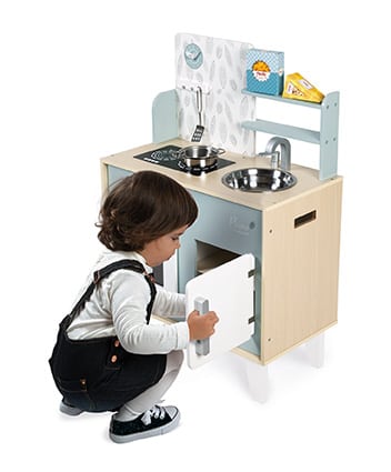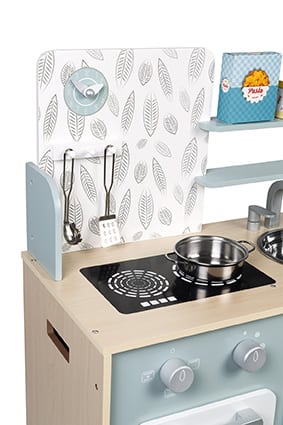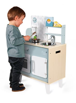 Ετοίμασε γευστικά πιάτα για τους φίλους σου, όπως η μαμά και ο μπαμπάς, και γίνε ένας μικρός σεφ! Η κουζίνα Plume είναι κατασκευασμένη από ξύλο και διαθέτει γάντζο για να κρεμιούνται η κουτάλα και η σπάτουλα, συνοδεύεται από μεταλλικό κατσαρολάκι και δύο κουτιά αποθήκευσης τροφίμων από χαρτόνι (για τα ζυμαρικά και το τυρί). Λειτουργεί σαν πραγματική κουζίνα, με δύο διακόπτες που έχουν ηχητικά εφέ και ανοίγουν την εστία. Περιέχει ακόμα έναν φούρνο, ένα ψυγείο με μεταλλικές πόρτες, έναν νεροχύτη από ανοξείδωτο ατσάλι.