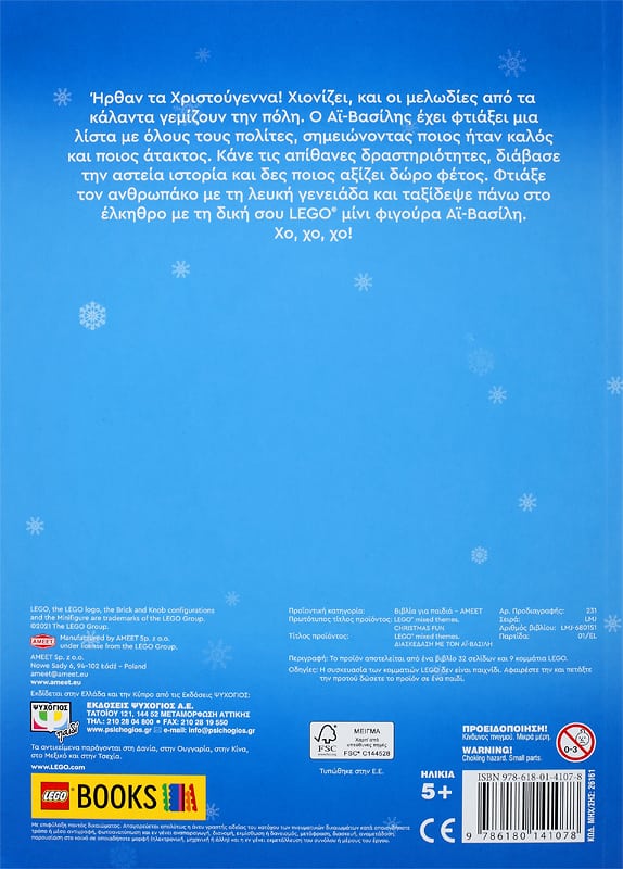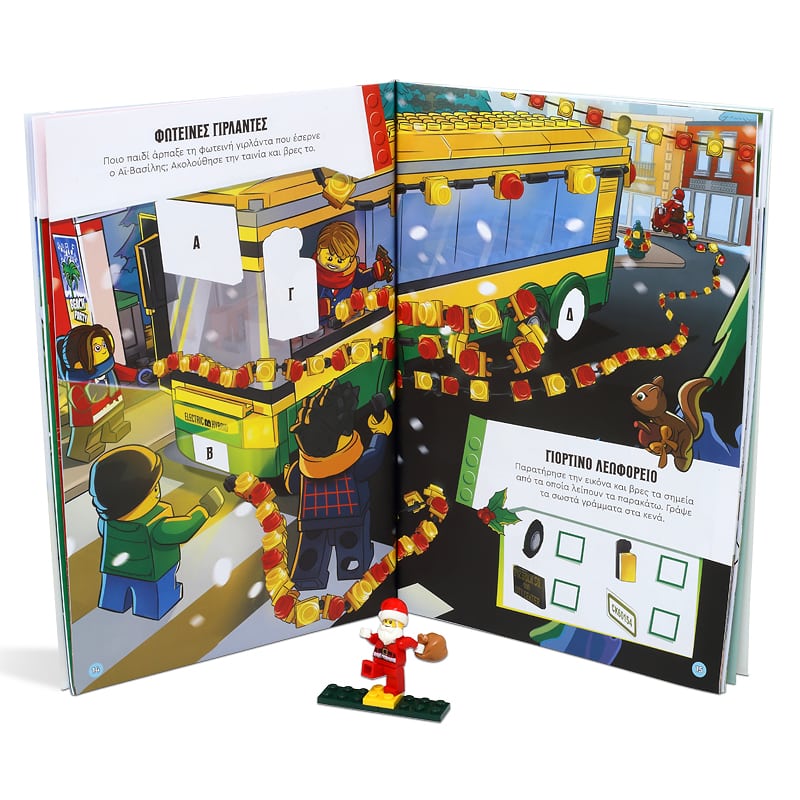 Ήρθαν τα Χριστούγεννα! Χιονίζει, και οι μελωδίες από τα κάλαντα γεμίζουν την πόλη. Ο Αϊ-Βασίλης έχει φτιάξει μια λίστα με όλους τους πολίτες, σημειώνοντας ποιος ήταν καλός και ποιος άτακτος. Κάνε τις απίθανες δραστηριότητες, διάβασε την αστεία ιστορία και δες ποιος αξίζει δώρο φέτος. Φτιάξε τον ανθρωπάκο με τη λευκή γενειάδα και ταξίδεψε πάνω στο έλκηθρο με τη δική σου LEGO® μίνι φιγούρα Αϊ-Βασίλη. Χο, χο, χο!