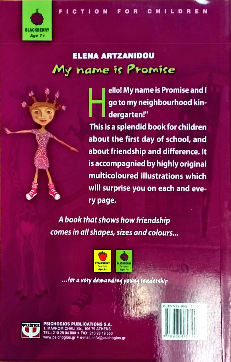Hello! My name is Promise and I go to my neighbourhood kindergarten!” This is a splendid book for children about the first day of school, and about friendship and difference. It is accompagnied by highly original multicoloured illustrations which will surprise you on each and every page.