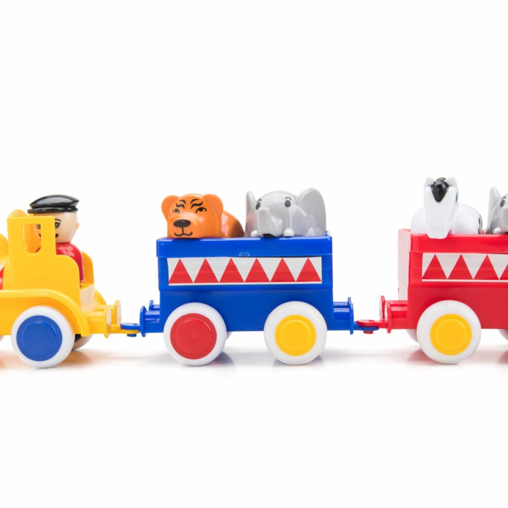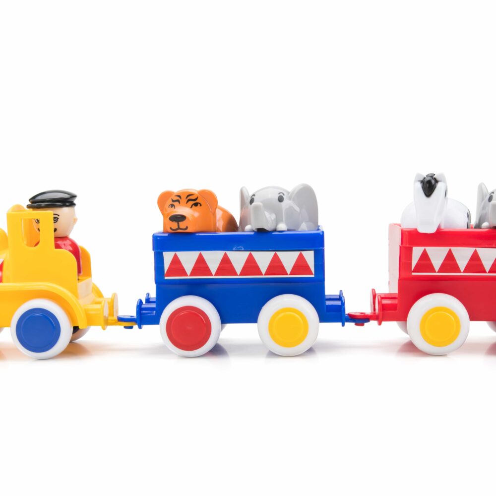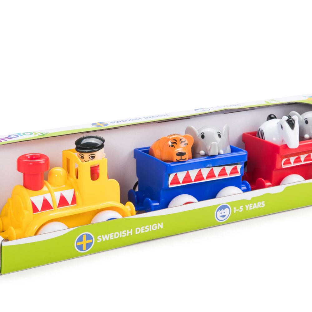 Επιβιβαστείτε στο πολύχρωμο τρενάκι της Viking και περιηγηθείτε στο τσίρκο! Το όχημα περιλαμβάνει 1 φιγούρα¬οδηγό, 2 βαγόνια και 4 φιγούρες ζωάκια: αρκούδα, ελέφαντα, ζέβρα, καμηλοπάρδαλη.